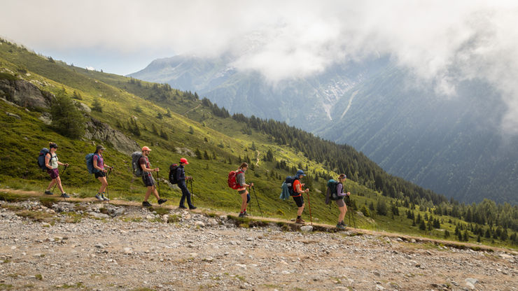 The final day of the TMB offers some of the finest views of Mont Blanc. As we walk along enchanting balcony paths high above the Chamonix Valley, with Mont Blanc ahead, we’ll gradually make our way down to Chamonix via Plan Praz by cable car. The journey down offers incredible views, making it a fitting grand finale.